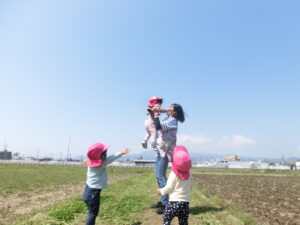 日中は、子どもたち一人ひとりに寄り添い、全力で遊び、さらに、先生達が笑顔で保育できるサポートをします。