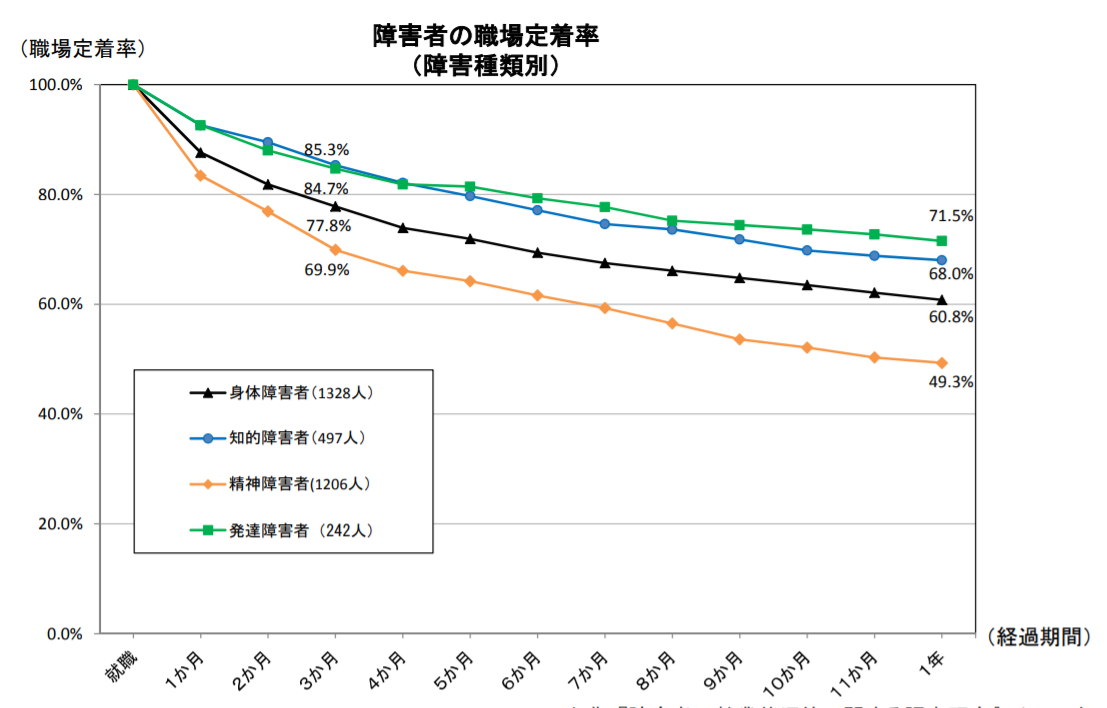※ 現在も世の中における障がい者の定着率はまだまだ低いのが現状で す